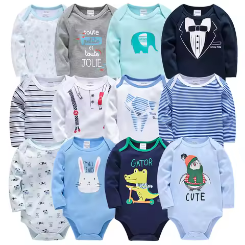 Kiddiezoom 3 Pz/lotto Autunno Inverno Unisex Cartoon Manica Lunga Baby Boy Girl Pagliaccetto 100% Cotone Morbido Neonato Tute Abbigliamento