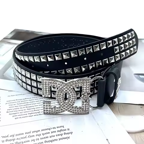 Cintura con strass da donna YK2 di lusso · hot girl, cintura in pelle con rivetti alla moda punk unica, versatile cintura decorativa incorporata