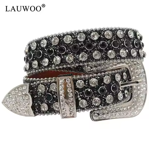 M2EA Goth per cinture di strass donna cinturino in pelle PU per cinture di strass Western Cowboy Y2K cintura moda per ragazze per Jeans uomo