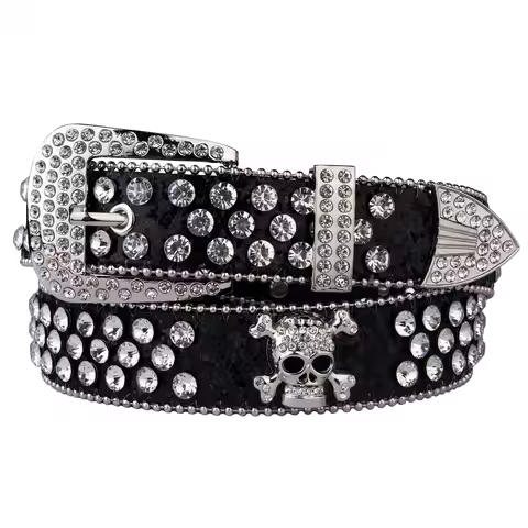 Cinture con strass con teschio per donna uomo cinturino in pelle Y2K cinturino in cristallo con borchie da cowgirl occidentale cowboy con diamanti bling bling