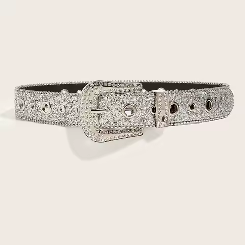 Y2K Cintura da donna con stampa solida e borchie con strass pieni Cintura in pelle PU con cristalli scintillanti regolabile per feste in club