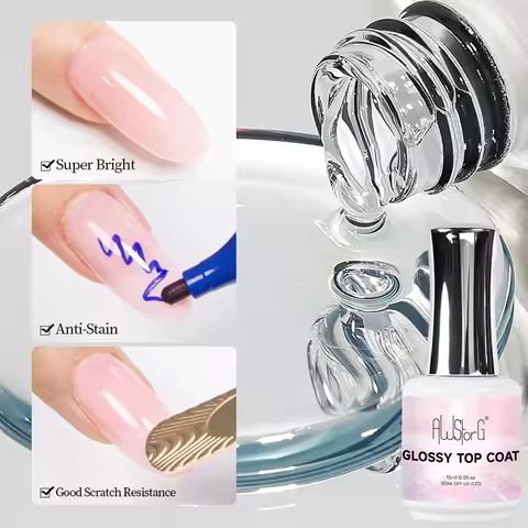 15ML Glossy Top Coat Shine Finish Long Lasting Soak Off Nail Clear UV Nail Lamp Gel For Gel Nail Polish salon Nail Art Design