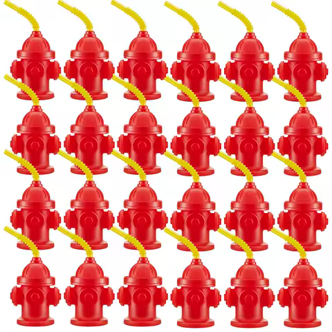 Novelty Fire Hydrant Straw Cups With Lids(4 /6/8/10Pack) 12oz Kids Fireman Birthday Favors Fire Truck Firefighter Party Supplies