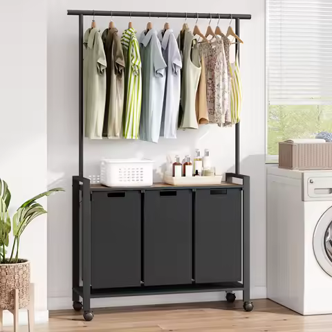 4. Laundry Organizers with Hanging Racks: Some brands offer laundry organizers that come with built-in hanging racks, making it easy to store and organize your laundry. These units often feature multiple compartments and hooks, providing a comprehensive solution for your laundry storage needs.