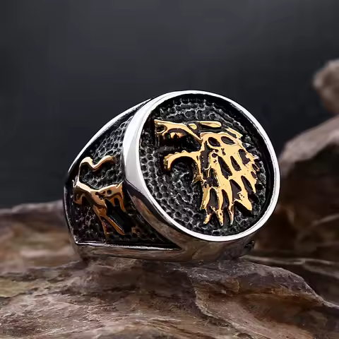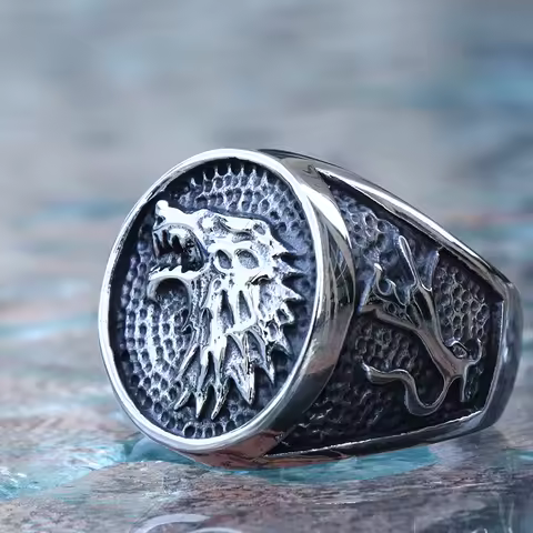 Retro Viking Stainless Steel Wolf Ring Men Biker Ice Wolf House Stark Winterfell Animal Ring Nordic Fashion Jewelry Size 7-13
