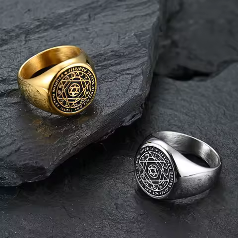 Pentagram of Solomon Rings for Men Patron Saint Ring Archangel Raphael Sigil Divine Healer Stainless Steel Male Jewelry