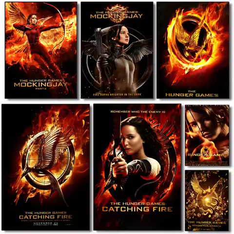 These posters, inspired by the iconic images from the movie, feature striking designs that encapsulate the essence of each film. The vibrant colors and detailed graphics instantly transport you to the world of Panem, whether you're admiring the fierce Katniss in The Hunger Games, or witnessing the epic scenes from Catching Fire and Mockingjay.