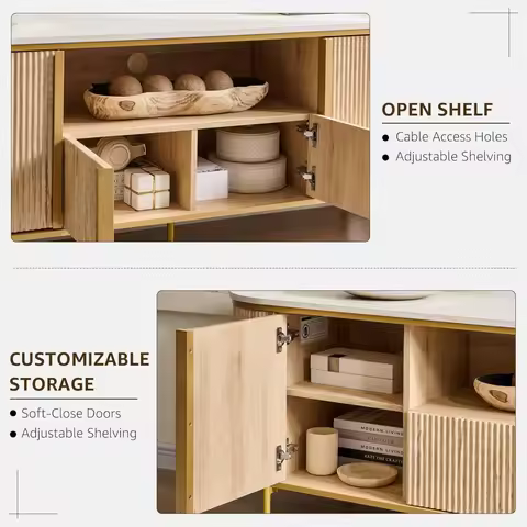 4. Functional Elements: Consider adding built-in shelves or compartments to the marble TV stand to store remote controls, media accessories, or decorative items.
