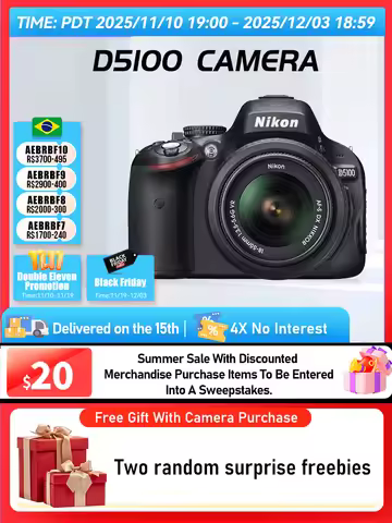 Vous pouvez également consulter des offres et des promotions telles que le Festival international du shopping 11.11, notre promotion anniversaire ou notre promotion d'été pour économiser un maximum lors de vos achats de nikon d5300 dslr camera en profitant de prix encore plus bas.