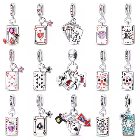Hot Sale Playing Cards Charms Bead 925 Sterling Silver Spades K Hearts Q Dangle Pendant Fit Bangle Bracelet Necklace DIY Jewelry