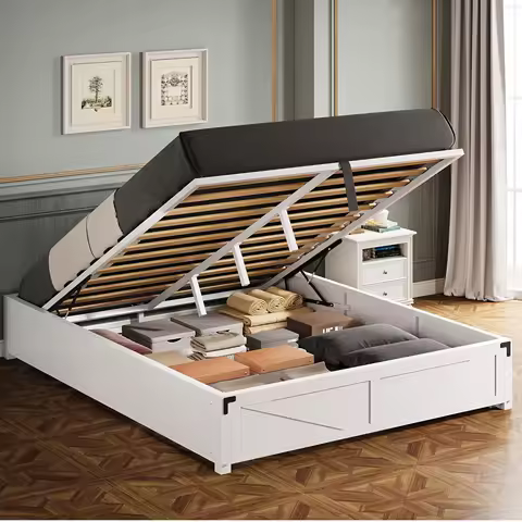 LIKIMIO Struttura letto queen size con piattaforma e contenitore sollevabile, doghe in legno, robusta e senza rumore, facile montaggio, bianco