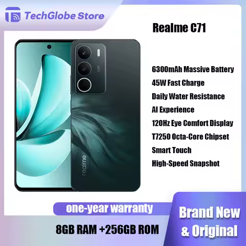 Realme C71 Cell Phone 6.67" 6300mAh Battery 45W SUPER VOOC Charge 50MP AI Camera 120Hz Display 8GB RAM 256GB ROM NFC Smartphone