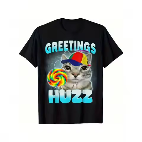 T-shirt divertente gatto meme morbido cotone traspirante saluti Huzz divertente gatto meme t-shirt girocollo per uomo donna