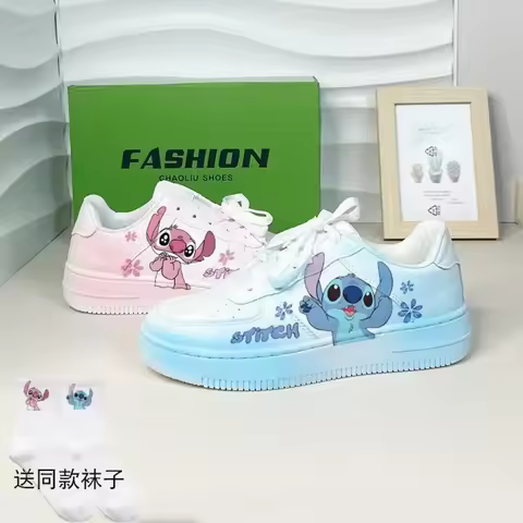 Disney stitch estudantes sapatos esportivos anime tênis sapatos kawaii meninas primavera outono lazer antiderrapante sapatos de tabuleiro