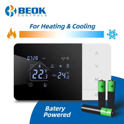Beok Tuya Heating/Cooling Thermostat for Gas Boiler Smart Home Battery-powered Thermoregulator Daily programming Work with Alexa