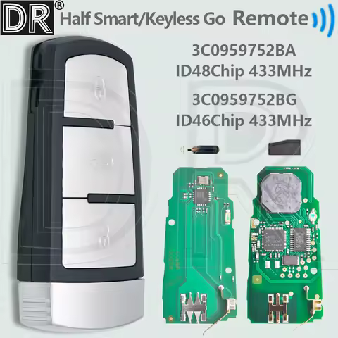 DR 3C0959752BA ID48/ID46 3C0959752BG 433MHz Half Smart/Keyless Go Car Remote Key For VW Volkswagen Magotan Passat B6 CC 3C B7