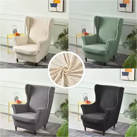 Elastic Jacquard Wing Chair Cover Stretch All-inclusive Armchair Slipcovers Removable Single Sofa Protector Case for Living Room