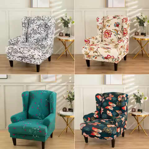 Stretch Spandex Wing Chair Cover Elastic Relax Armchair Slipcovers Wingback Sofa Protector with Seat Cushion Cover Home Decor