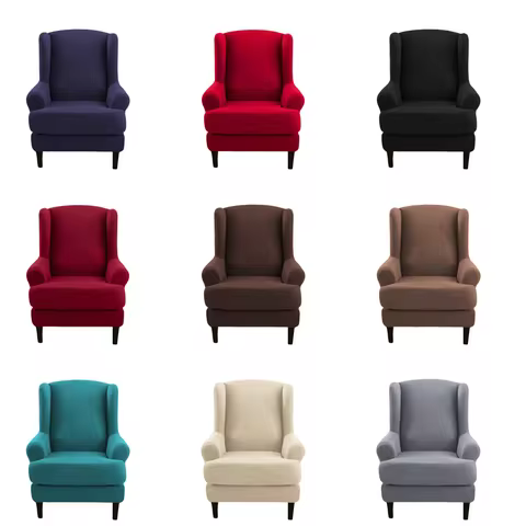 Solid Colour Wing Chair Covers Stretch Wingback Armchair Cover with Seat Cushion Cover Elastic Removable Sofa Couch Protector